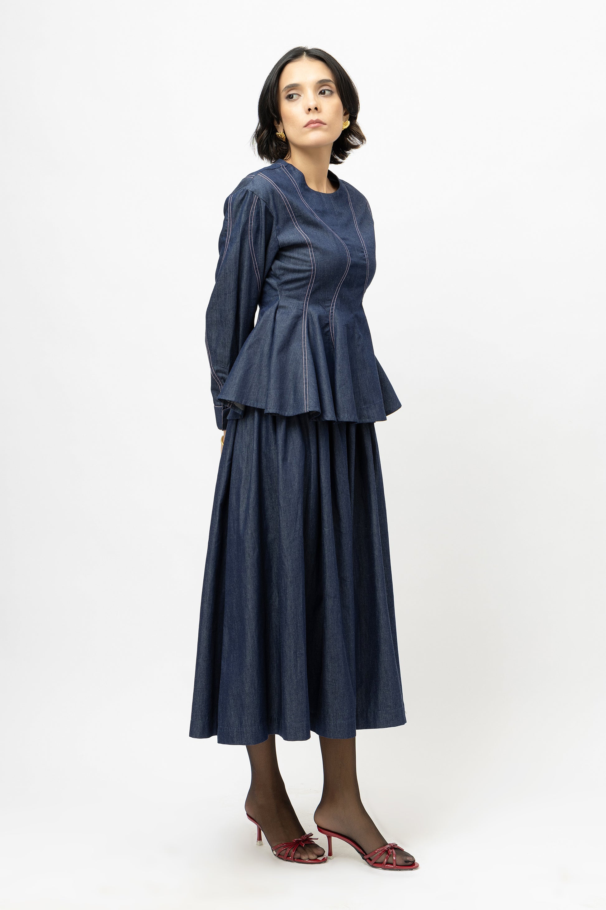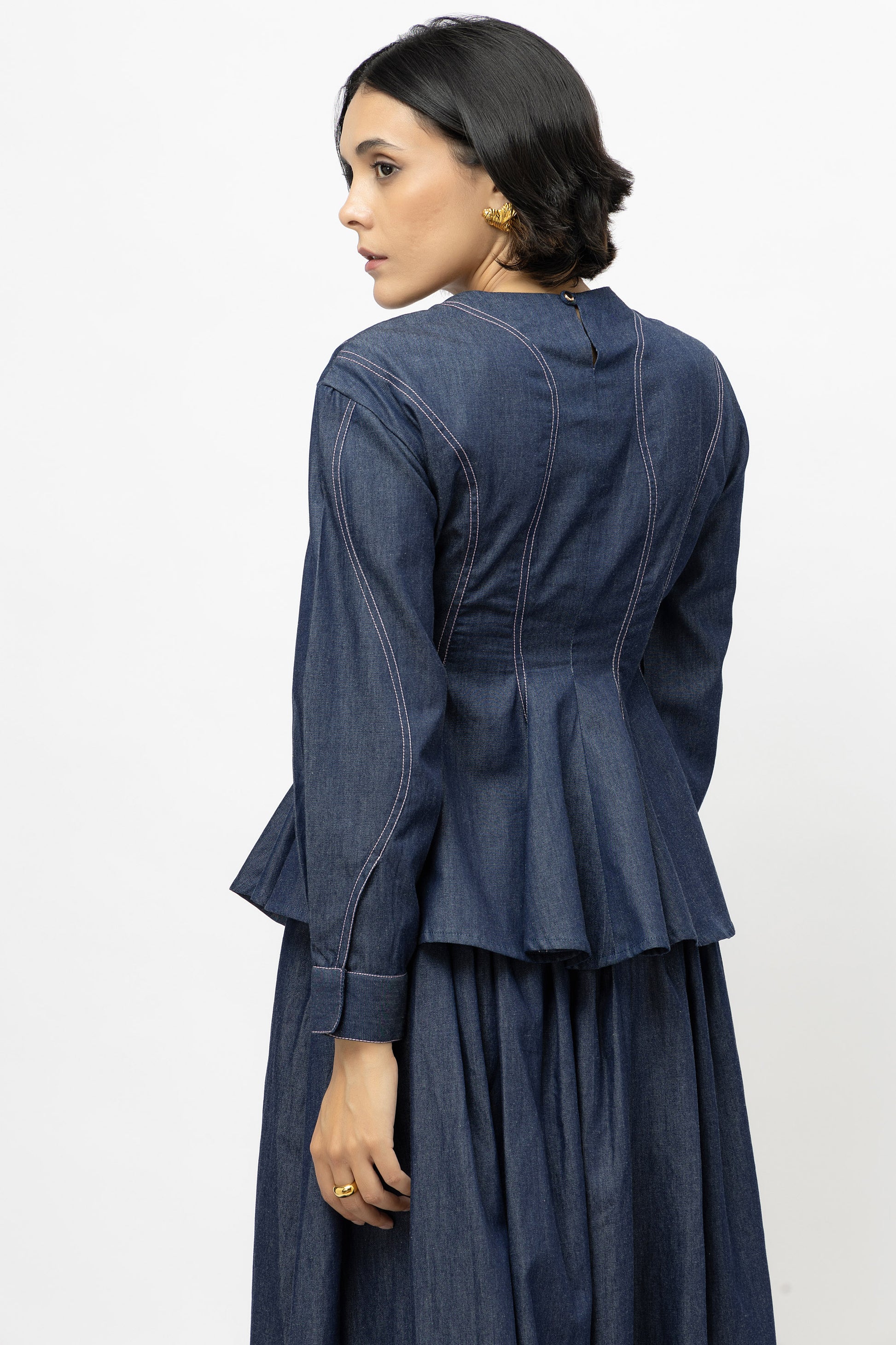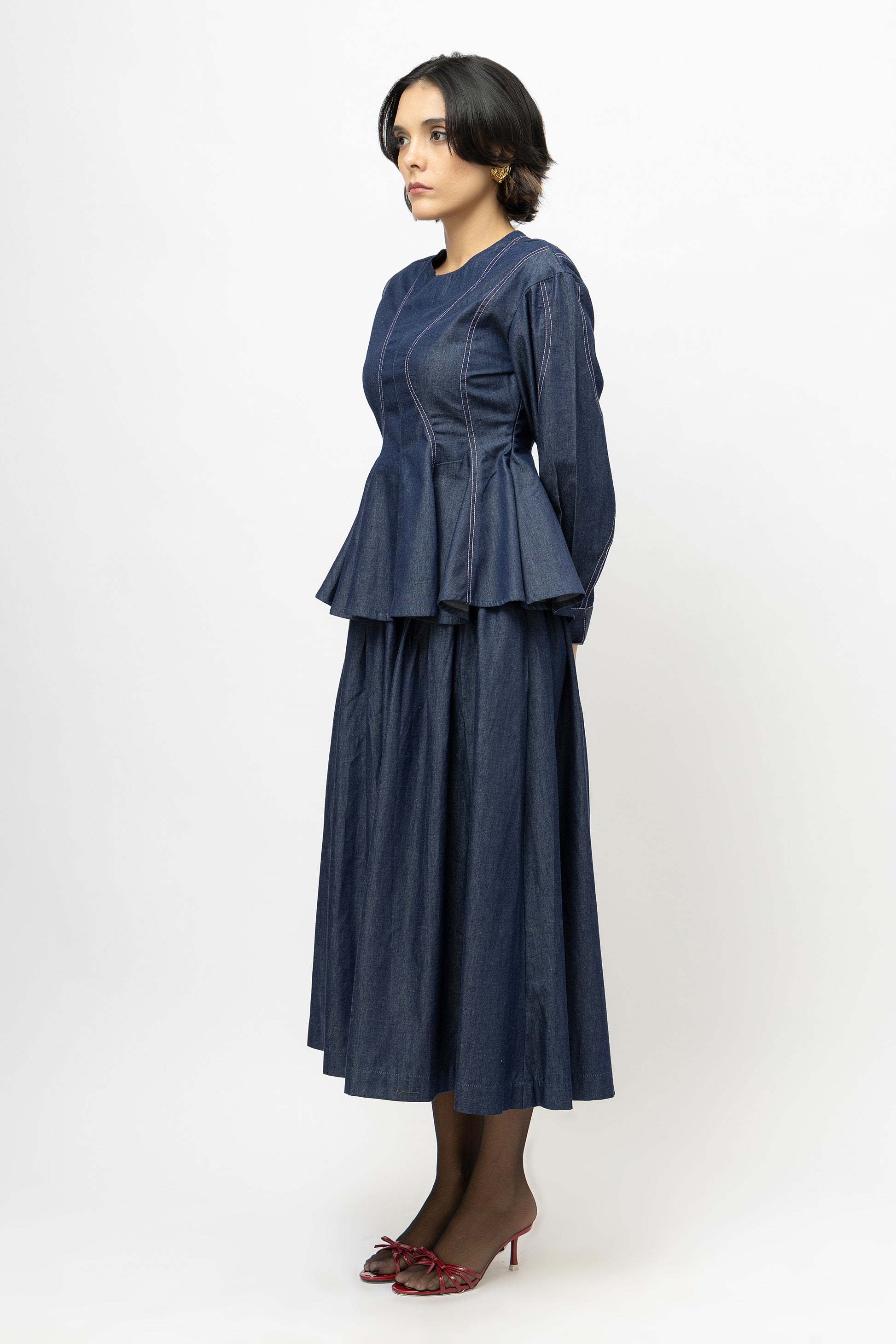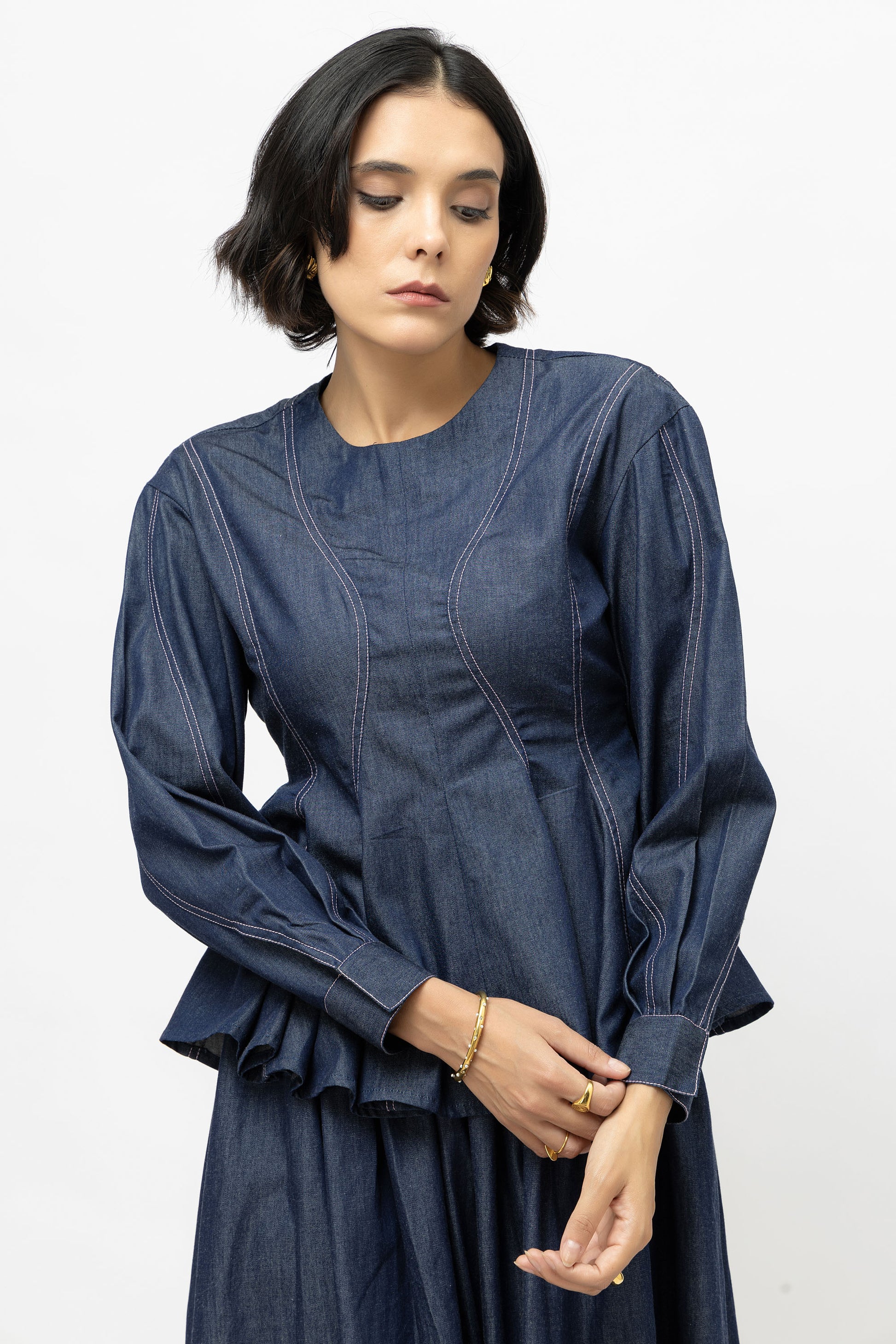- Peplum A-line fit that accentuates the waist and adds feminine flair