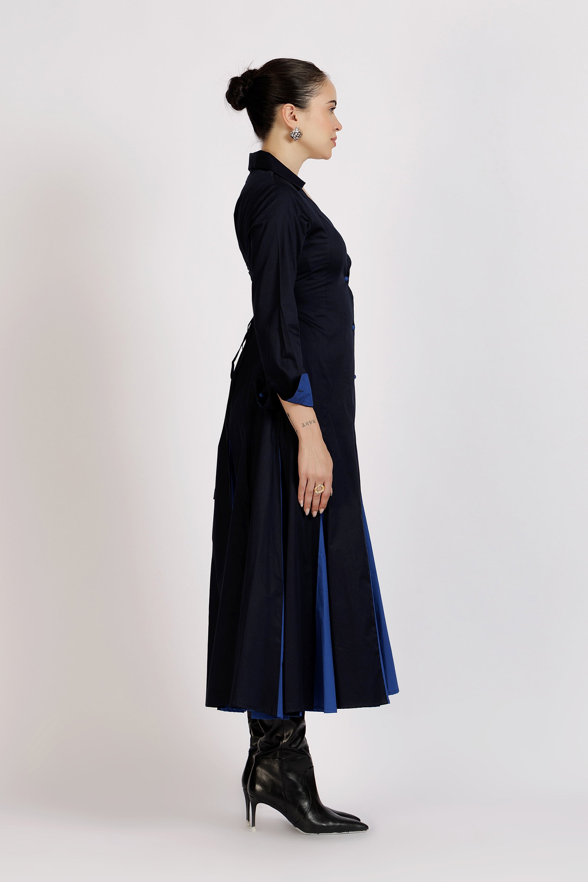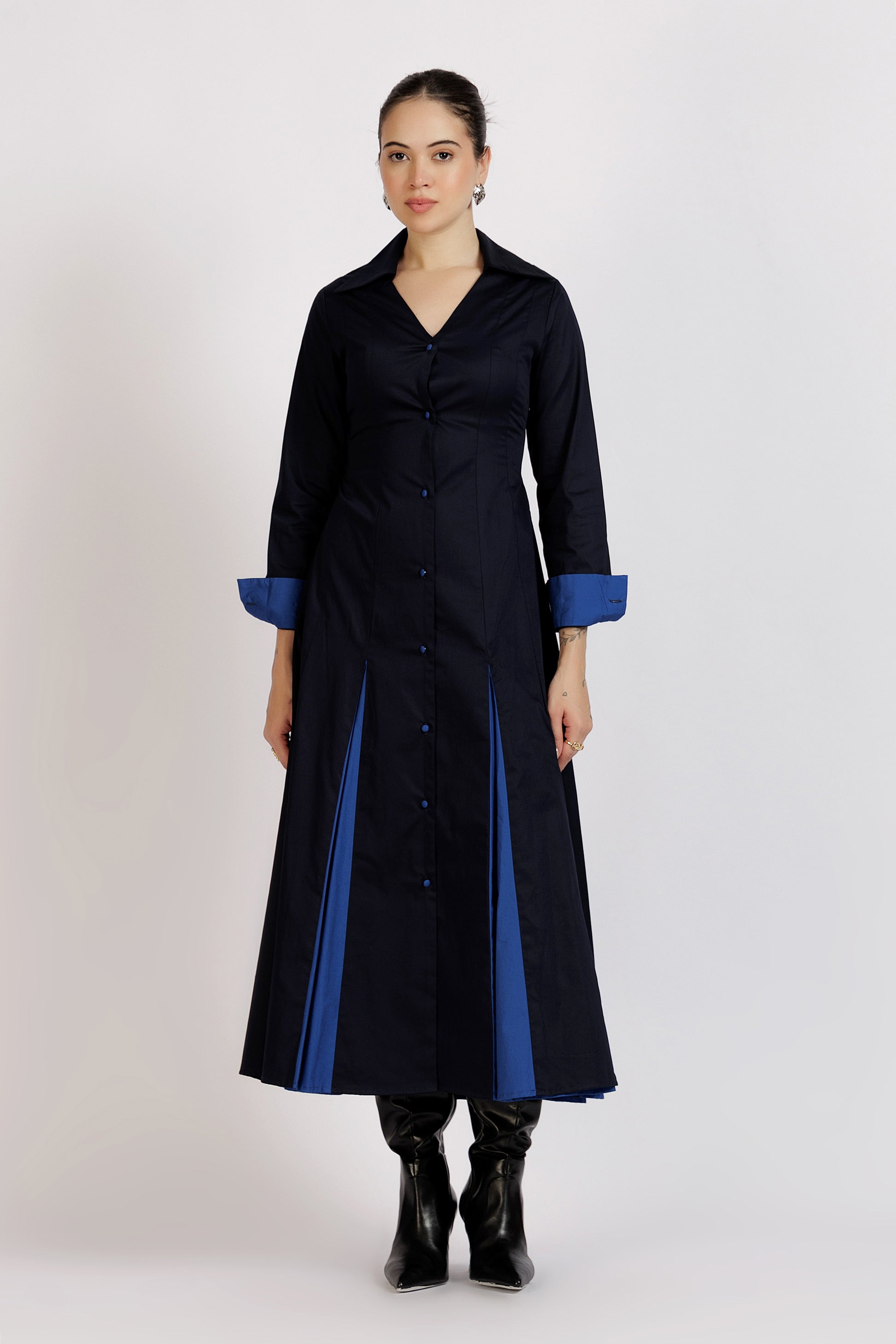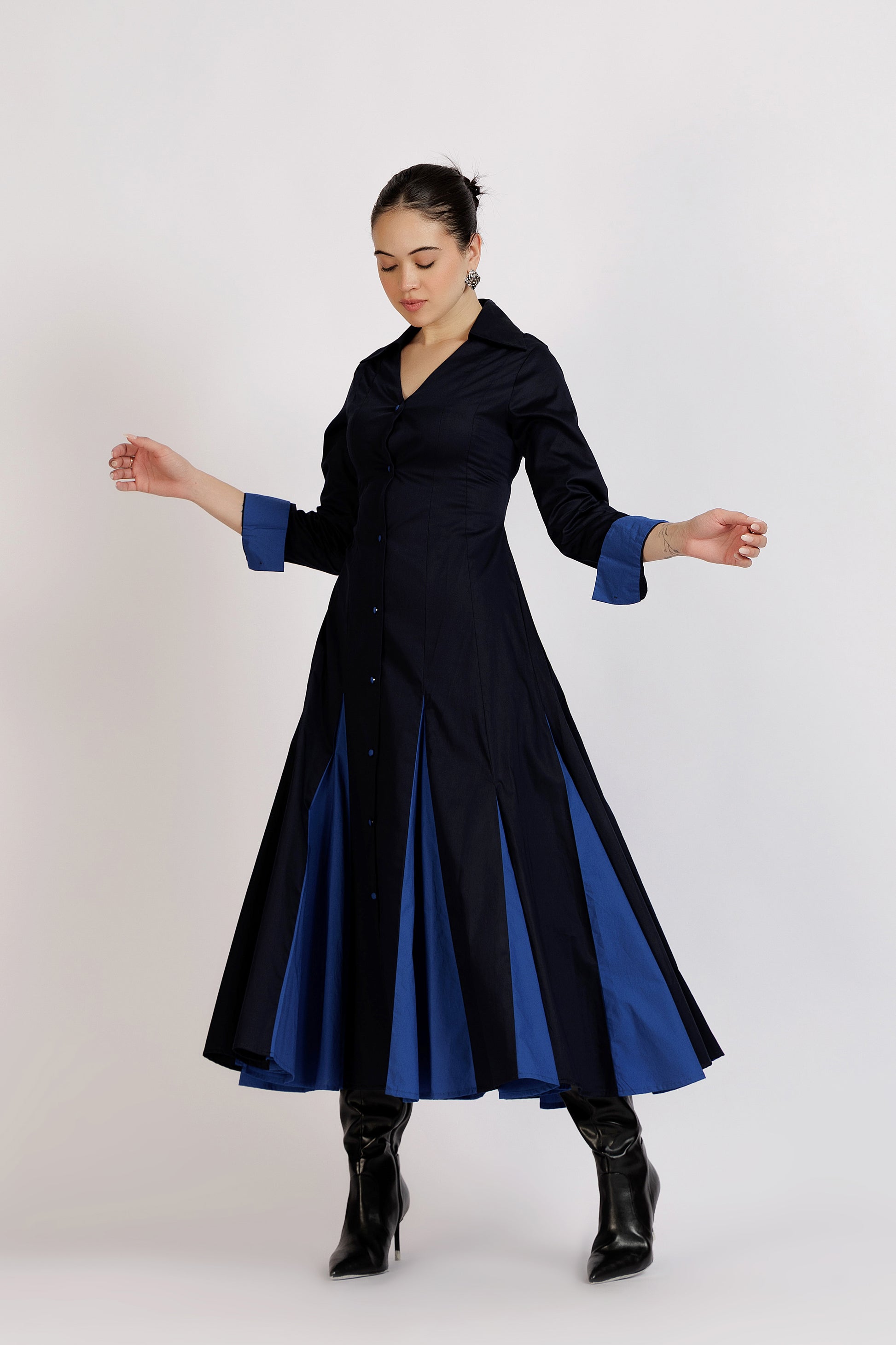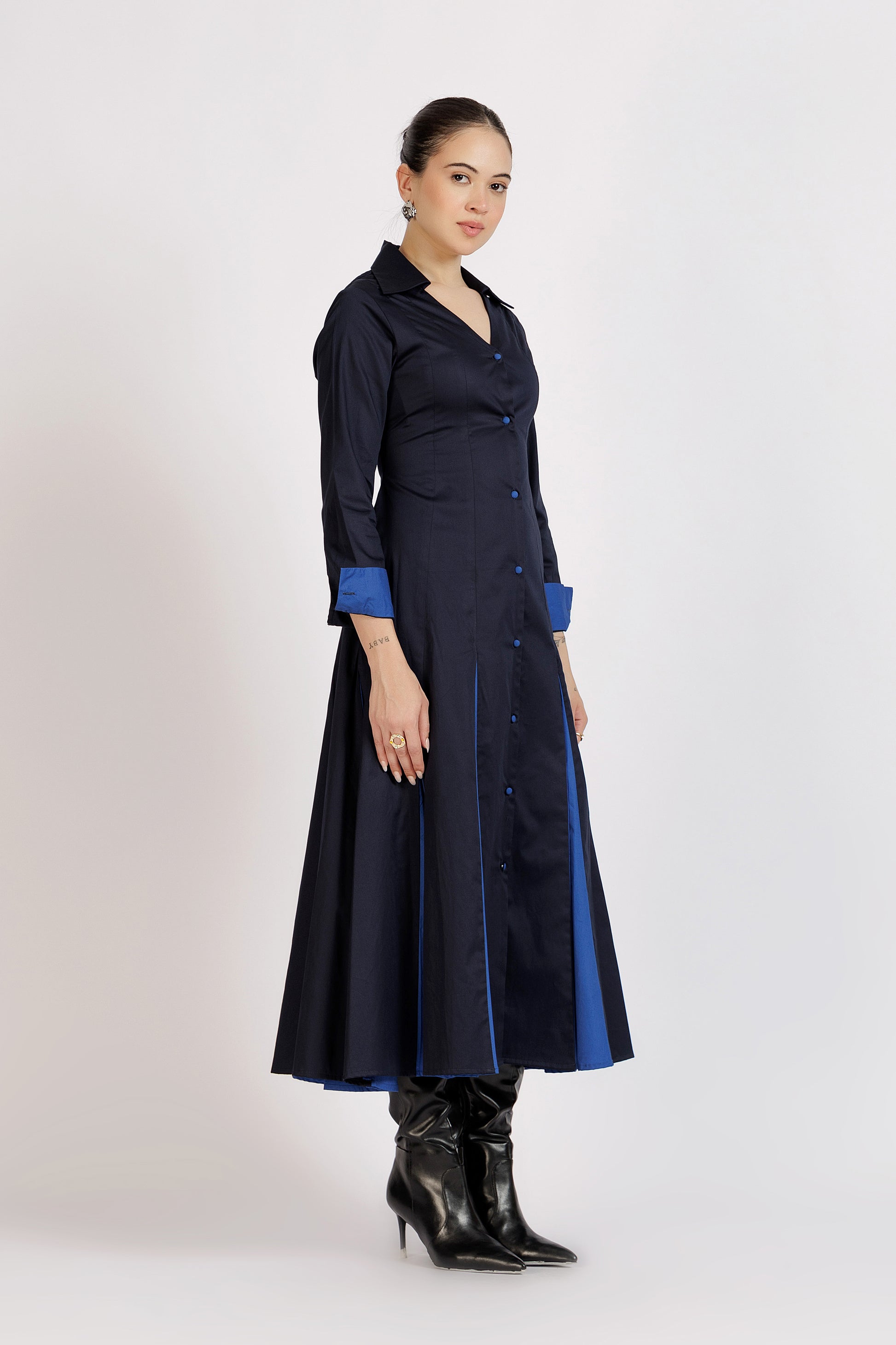 - Fabric & Color: Navy cotton satin & electric blue poplin